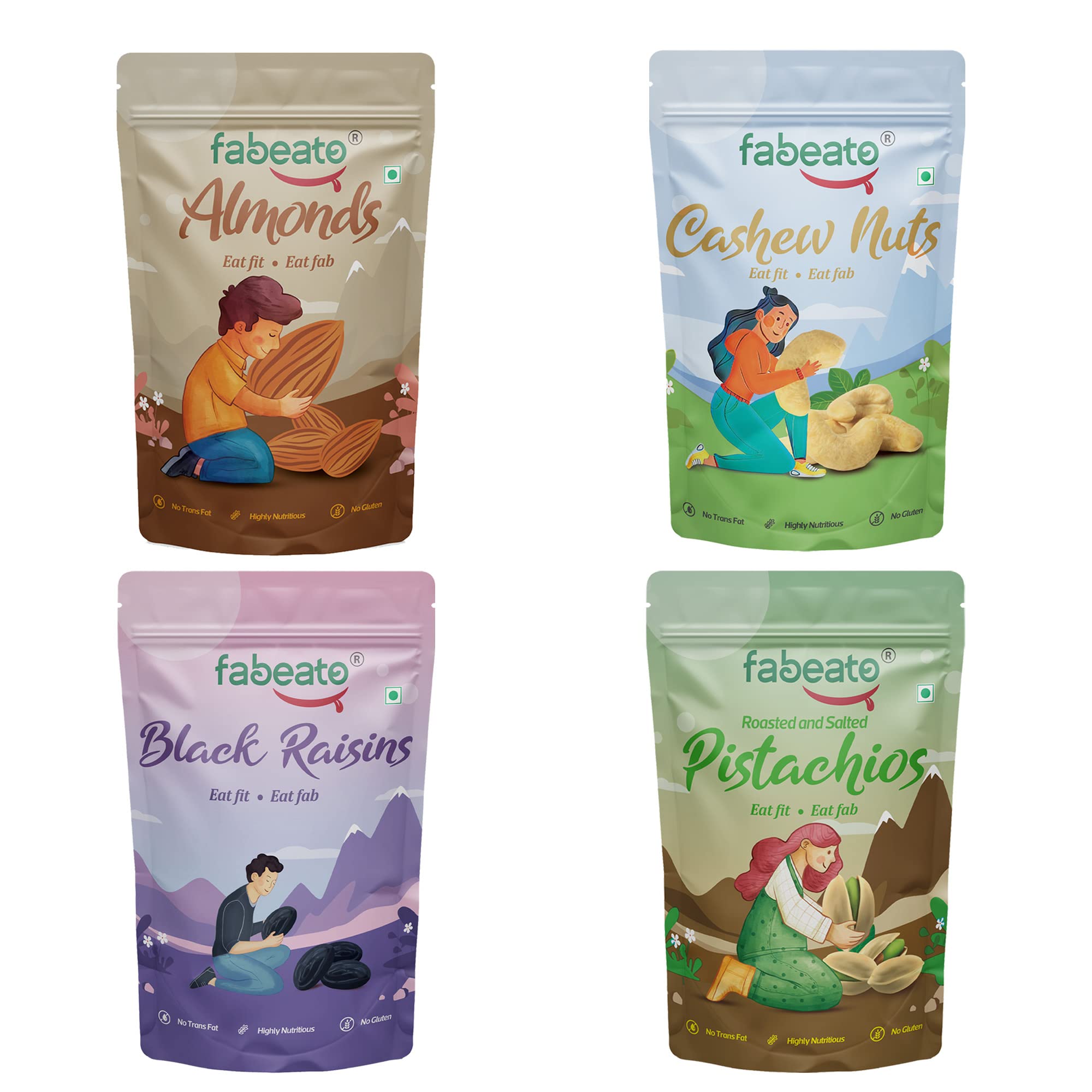 Fabeato Premium Dry Fruits and Nuts Combo (4 x 200 g) Almonds, Cashews, Pistachi
