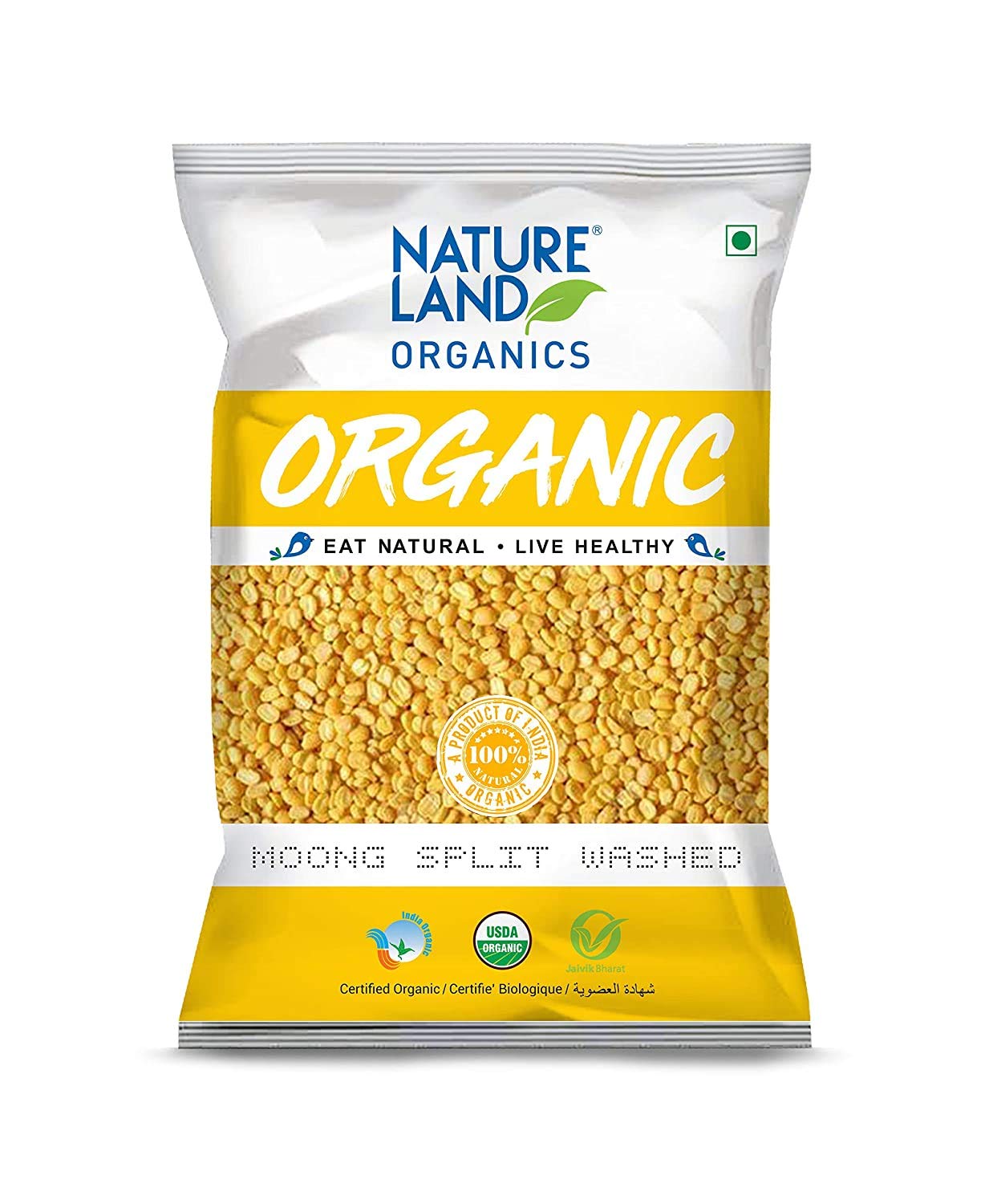 Natureland Organics Moong Dal Yellow/Split Washed 500 Gm - Organic Healthy Pulse