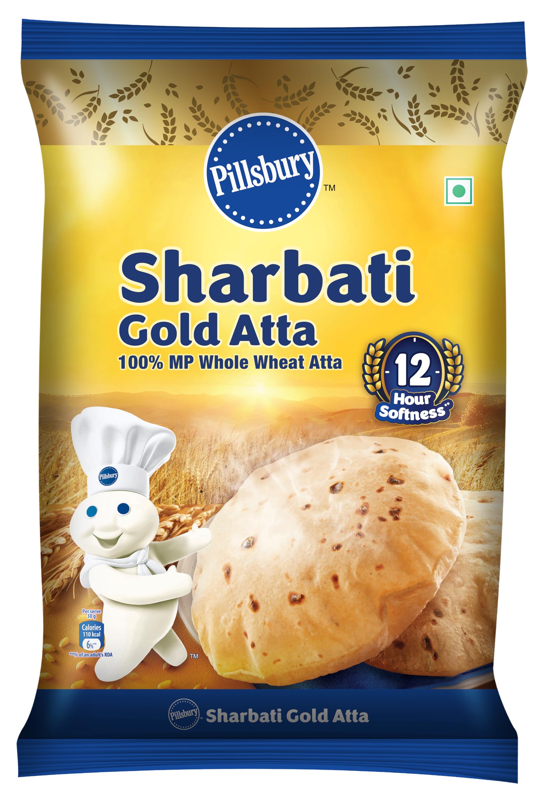 Pillsbury Gold Madhya Pradesh Sharbati Whole Wheat Atta | Upto 12 hours of Softn